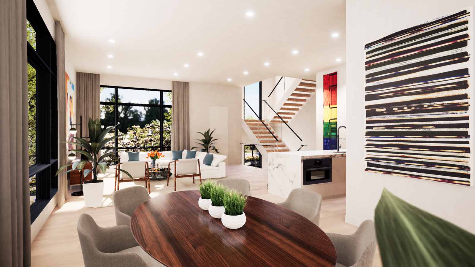 Ceiling Heights: 11′ Living Level; 10′ Bedroom Level
